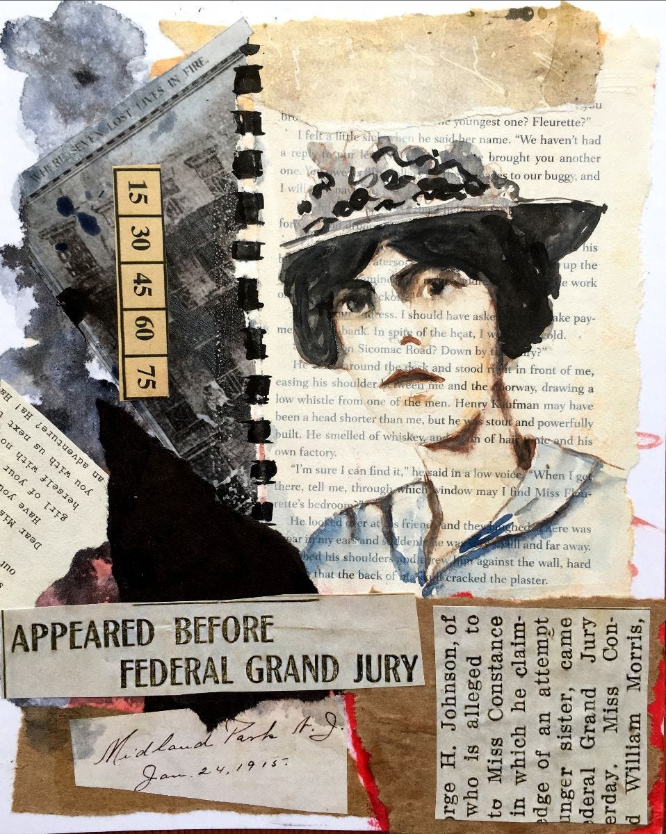 Anyway, what happened is that I took a collage class that involved painting a little portrait on top of a book page. It occurred to me that most artists who do this are using other peoples’ books, but I can actually use my own book, and bits and pieces from my own research, which I have always found so visually compelling. That makes it really personal. It’s truly a piece of art that no one else could make.