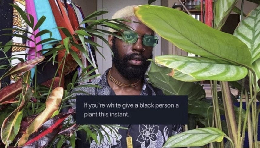 Here is a small thing that made me happy: this truly delightful story of an Instagram account designed to encourage white people give plants to black people. It's funny and uplifting and wonderful. If you just want to feel happy for a little while, go check out your state's post in the Underground Plant Trade Instagram account and enjoy all the community-building and friendship-making happening over people passing plants around.
