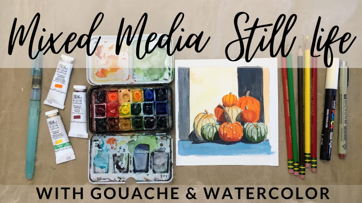Or maybe we could paint and draw together! I have a two new classes on mixed media still life. You can use watercolor, gouache, colored pencil, marker, paint pen...and in each class, we learn a few new art techniques, so it's not just about painting this one thing.