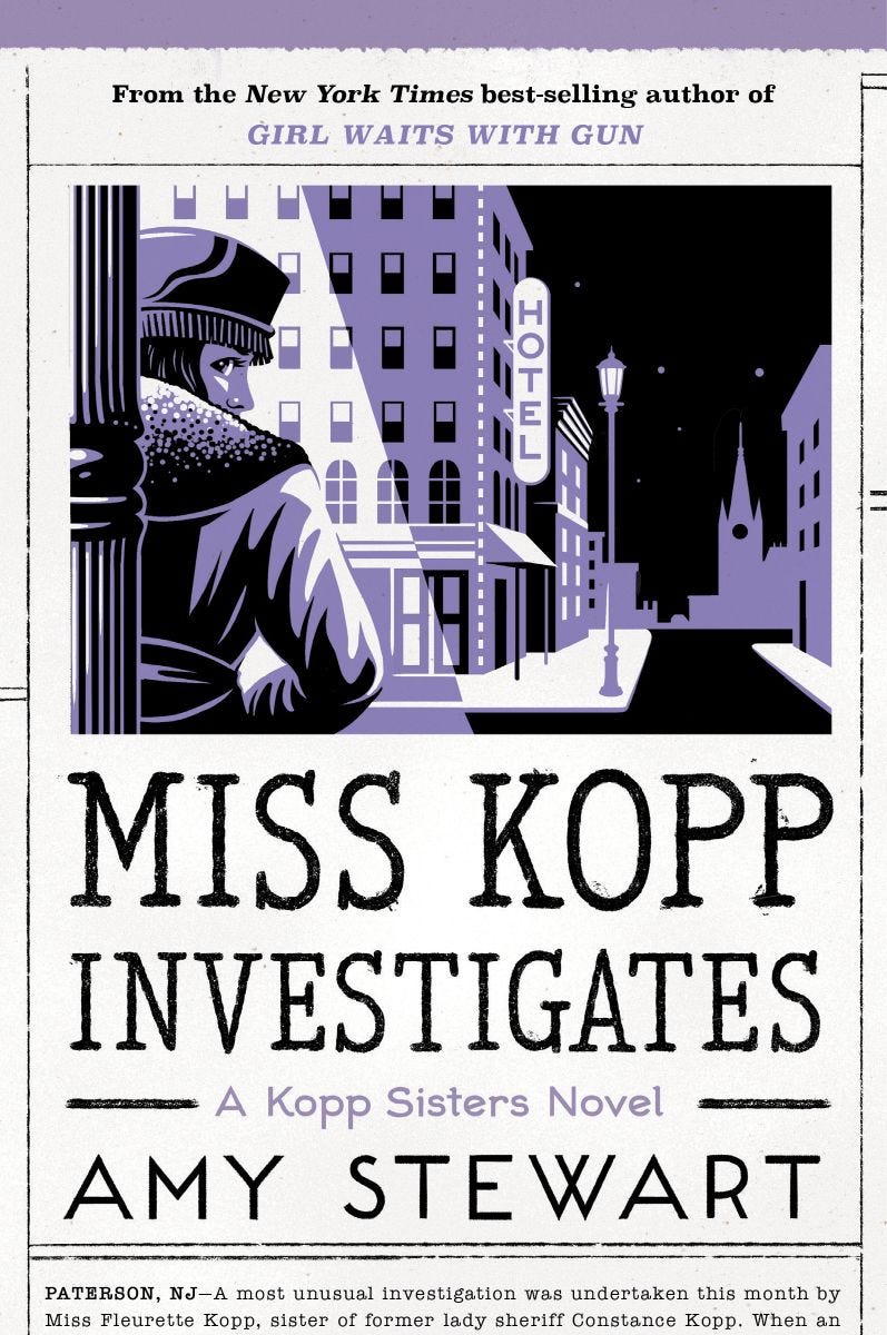 MISS KOPP INVESTIGATES is the SEVENTH Kopp Sisters novel, and it comes out in September 2021. This is the first book in which Fleurette plays a starring role, and that's her on the cover, lurking about mysteriously on a dark and stormy night.