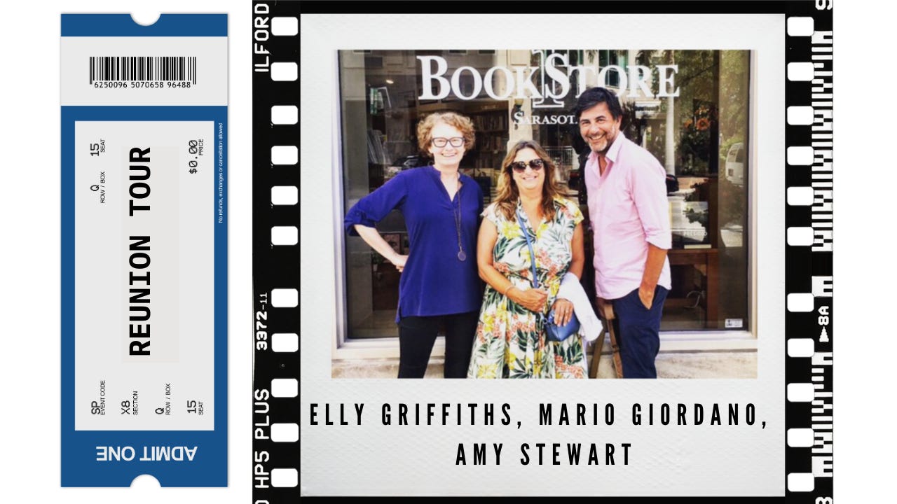 In 2018, I had the most remarkable, rewarding book tour experience of my life. My publisher (yes, the same one who hooked us up with the free wine, they're amazing) sent me on book tour with two authors I'd never met: Elly Griffiths and Mario Giordano. We were complete strangers from three different countries, but we got on like a house afire. For a week we toured Florida together, went sightseeing together, ate our meals together, and really bonded in a short time.