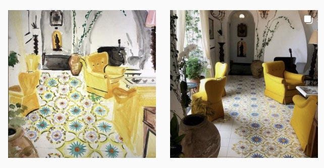 The Still Here Still Life page posts a still life image for artists to paint, and the Room Portrait Club does the same for interiors. Even if you don't paint them, it's fun to follow along and see how artists interpret these images. Some people add random elements, like zebras or cats or cupcakes, which is crazy and awesome. (And if interiors intimidate you, I have a class on that.)