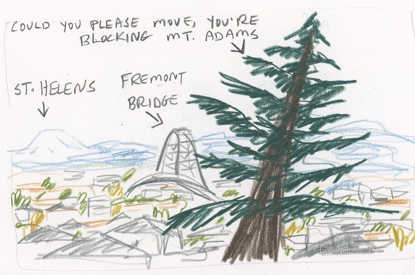They’ll probably stay up for a day or two. Then I guess I’ll start getting used to looking out the window where a Himalayan cedar used to be and seeing Mount Adams instead.