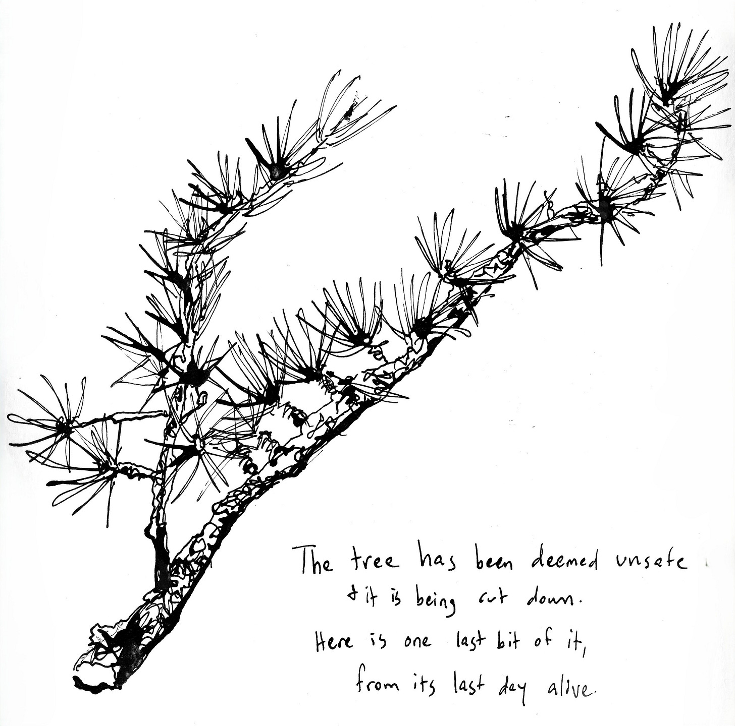I like to think of my drawing hanging on his wall after the tree is gone.