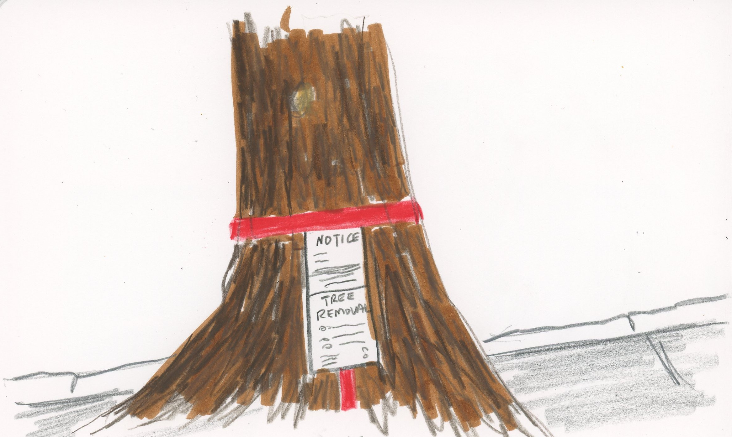 When a red ribbon appeared around the tree, with a notice attached to it announcing the end of its life, my heart ached for it.