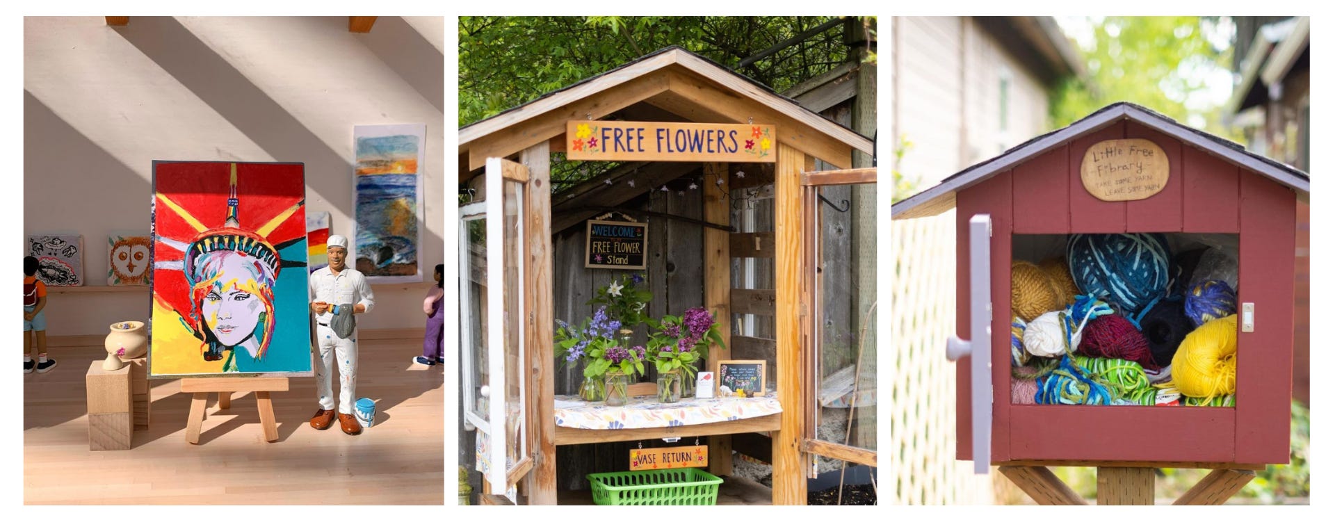 Are you already obsessed? I thought so. But it gets better. The folks at PDXDinorama (take a dinosaur, leave a dinosaur) made a map of dozens of Sidewalk Joy Stations throughout Portland! Even if you don’t live here and can’t make it your mission in life to visit each one, you can still browse the listings and be inspired. They aren’t all housed in Little Free Library-style boxes—some are attached to trees or just arrayed around a front yard—but they are all good-natured, creative, and, well…FREE. Take a thing, leave a thing. Make something, admire something. Share the joy.