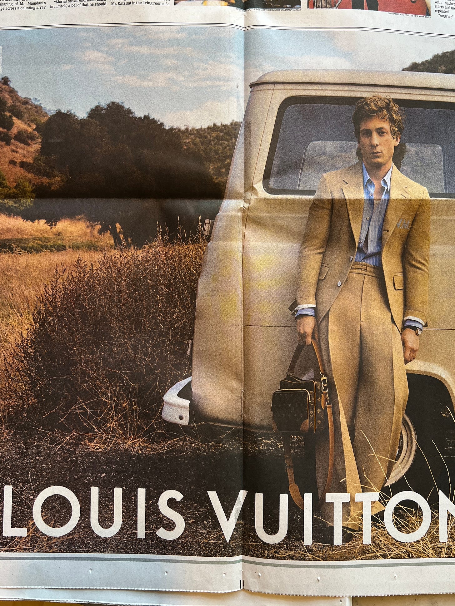 Here’s another ad, from the same edition of the paper. It’s for Louis Vuitton, who, I’m told, makes handbags. Did they take a picture of the handbag and surround it with blurbs and rave reviews? No. No, they did not.