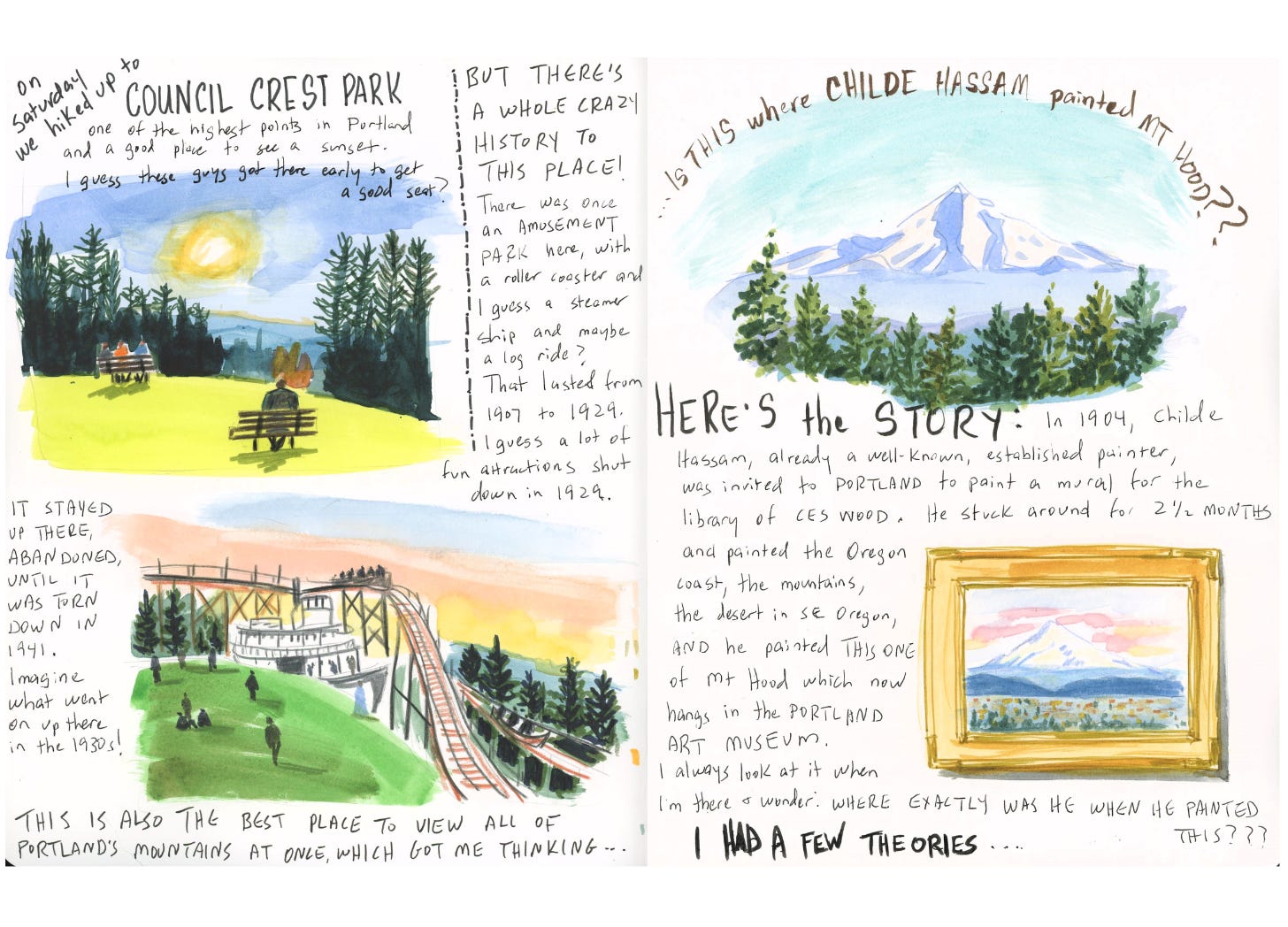 Longtime readers of this newsletter might remember that in 2018, I declared myself the unofficial artist-in-residence of Washington Park, just down the street from my house in Portland, OR. I wrote about it on my blog and in my newsletter at the time, and a reporter from the local paper interviewed me about it in 2020, when everyone was in lockdown and looking for ways to pass the time.