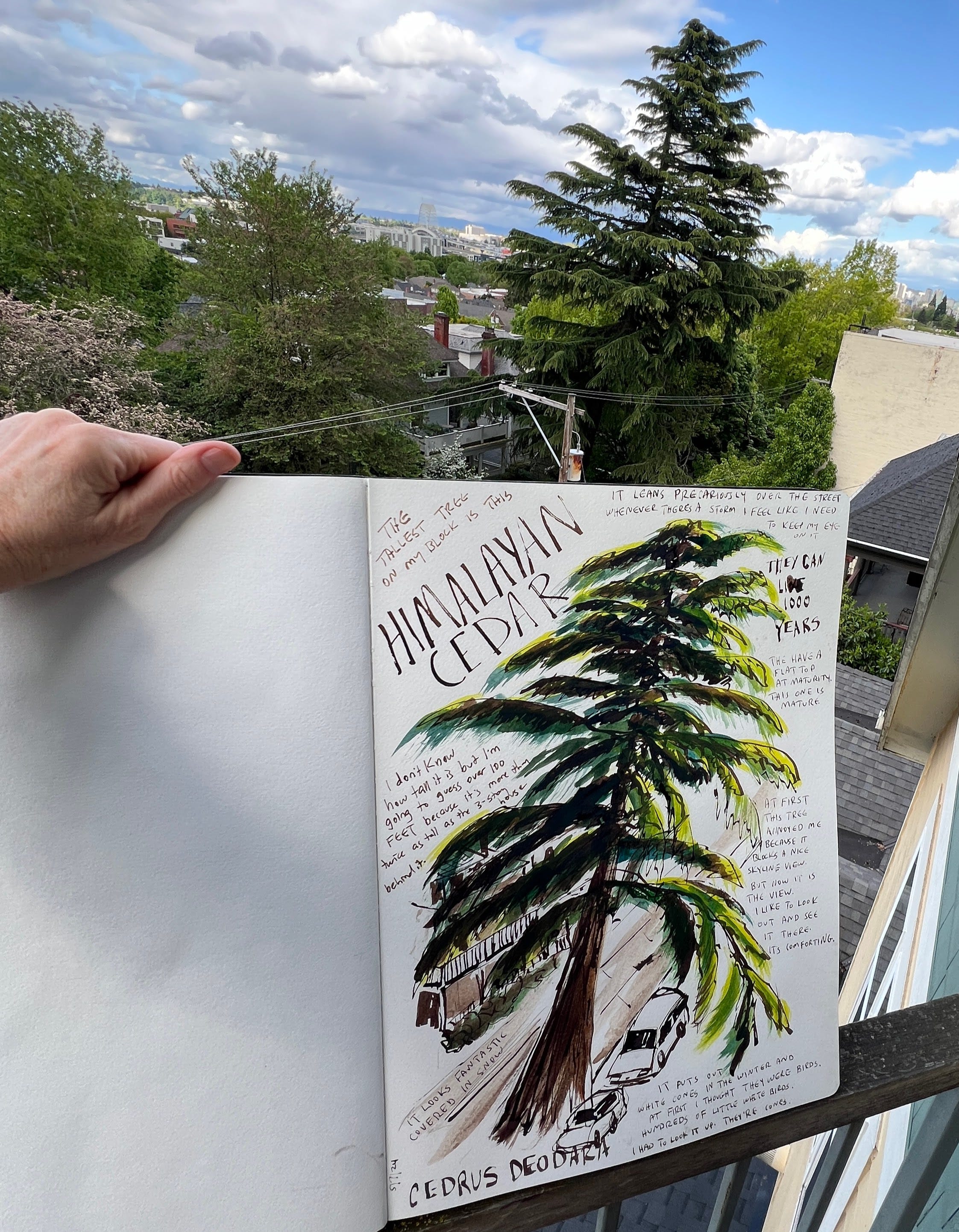I’ve been drawing the trees on my street on and off for a while, but I decided to make it official and be the artist in residence of the trees on my block. (There’s a lot of them! This will take a while.) I have one of these giant 16 inch tall Moleskine watercolor notebooks that I’ve never used, and I think it’s perfect for a tree project. Here’s the first page: