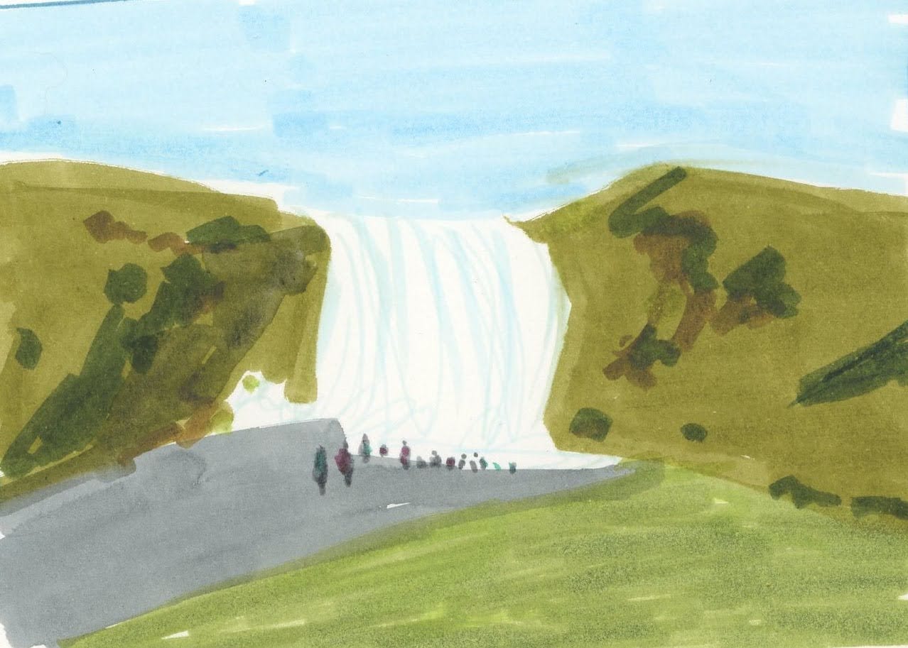 Undersea waterfalls: Yes! There are waterfalls under the water! How is this possible? It’s because—get ready—cold water is denser than warm water. So when the two meet, the cold water falls! The Denmark Strait Cataract, between Iceland and Greenland, is the world’s largest waterfall, with the dense, cold water plunging over an undersea ridge and falling about TWO MILES to the ocean floor. You will probably never see the Denmark Strait Cataract, but I hope you agree that it is wonderful to know about it.
