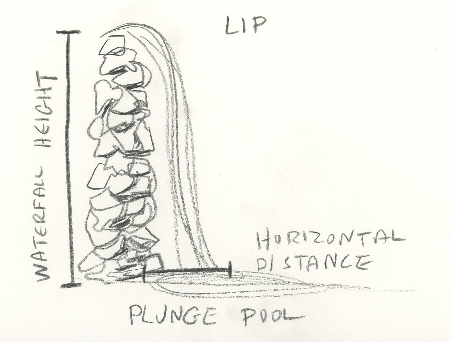 What that means in non-math terms is that steepness matters. If it isn’t terribly steep—if it just lazily drifts down along a gentle diagonal slope—it’s not a waterfall. The water has to actually FALL.