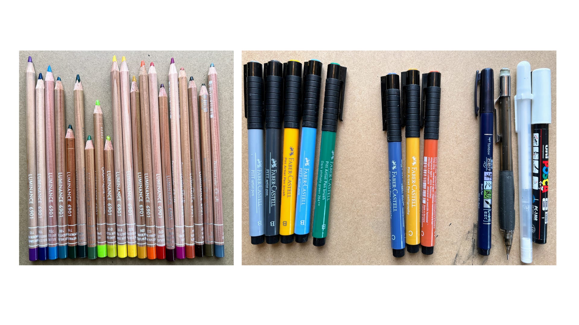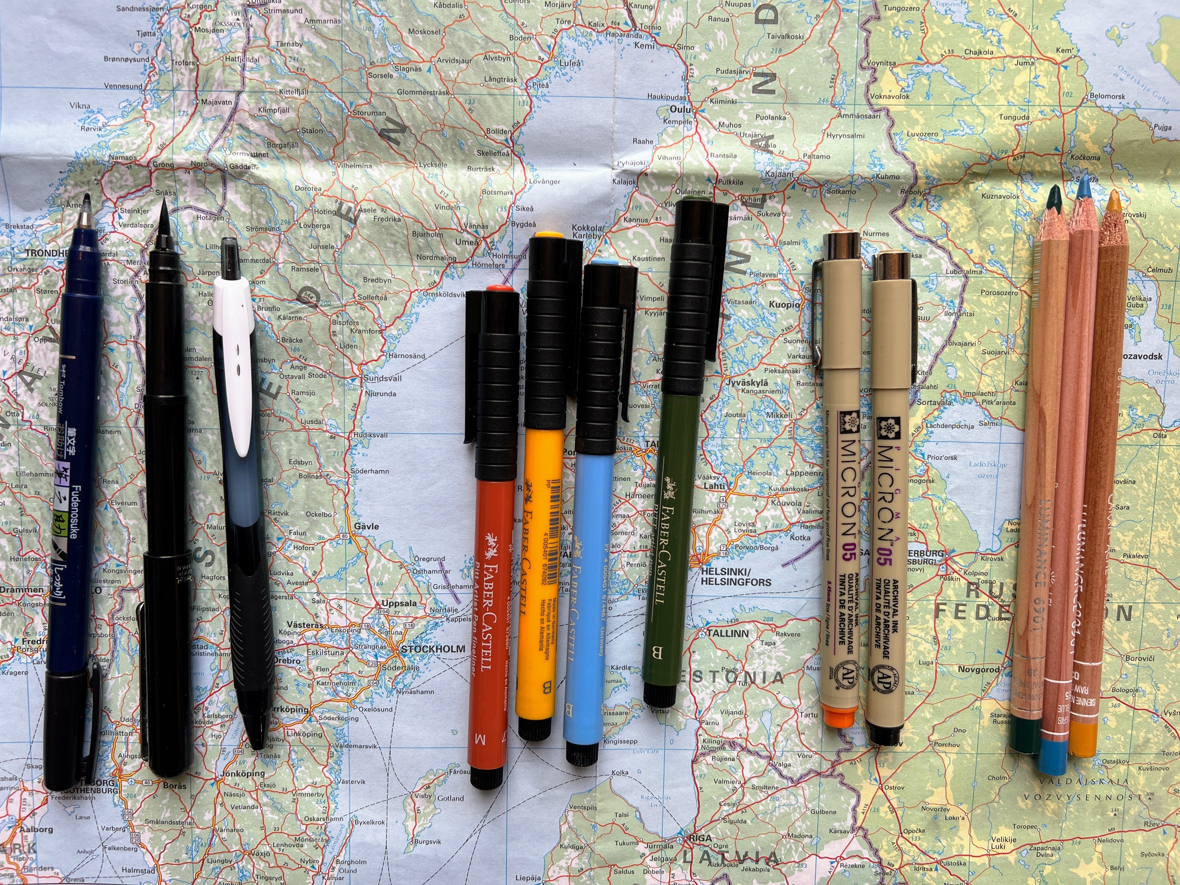 Colored pencils! This is tricky in a pocket kit because then you’d have to add a pencil sharpener. Or just take a few hard-lead pencils that last longer and aren’t prone to breaking, such as Caran d’Ache Luminance or Faber Castell Polychromos, and keep a sharpener in your suitcase (here’s my favorite sharpener).
