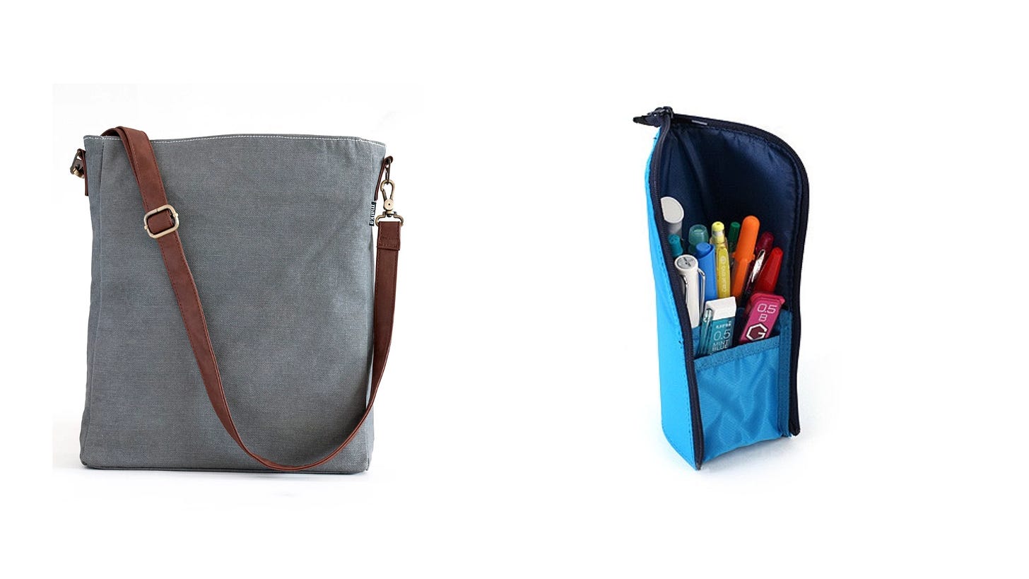 I like this Maika crossbody bag. It easily holds a 5x8 sketchbook, a pencil pouch or two, plus my phone, wallet, whatever. Here’s a reel that shows how I attach this NeoCritz pencil case to the outside of the bag when I’m sketching. Notice that the little pocket holds a 4 oz plastic water bottle for your watercolor.